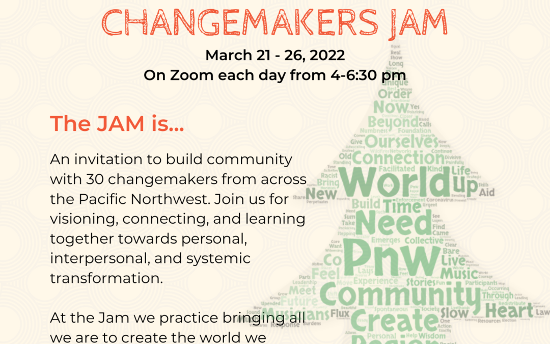 It is with great excitement that we invite you to apply for the Pacific Northwest Virtual Jam – a gathering of about 30 dynamic and diverse changemakers for deep learning, systemic inquiry, and community building.