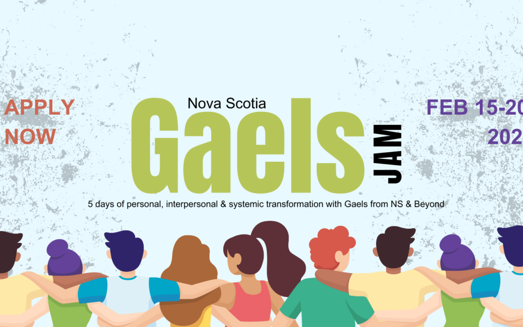 It is our honour to invite you to apply to participate in the 10th Anniversary Nova Scotia Gaels Jam! This Jam will connect 25 diverse, engaged, and committed leaders from across Nova Scotia and beyond for a week of deep listening, sharing, self-discovery, systemic inquiry, and community building. It will take place from Thursday, February 15, to Tuesday, February 20, 2024, at the Tatamagouche Centre in beautiful Tatamagouche, Nova Scotia.