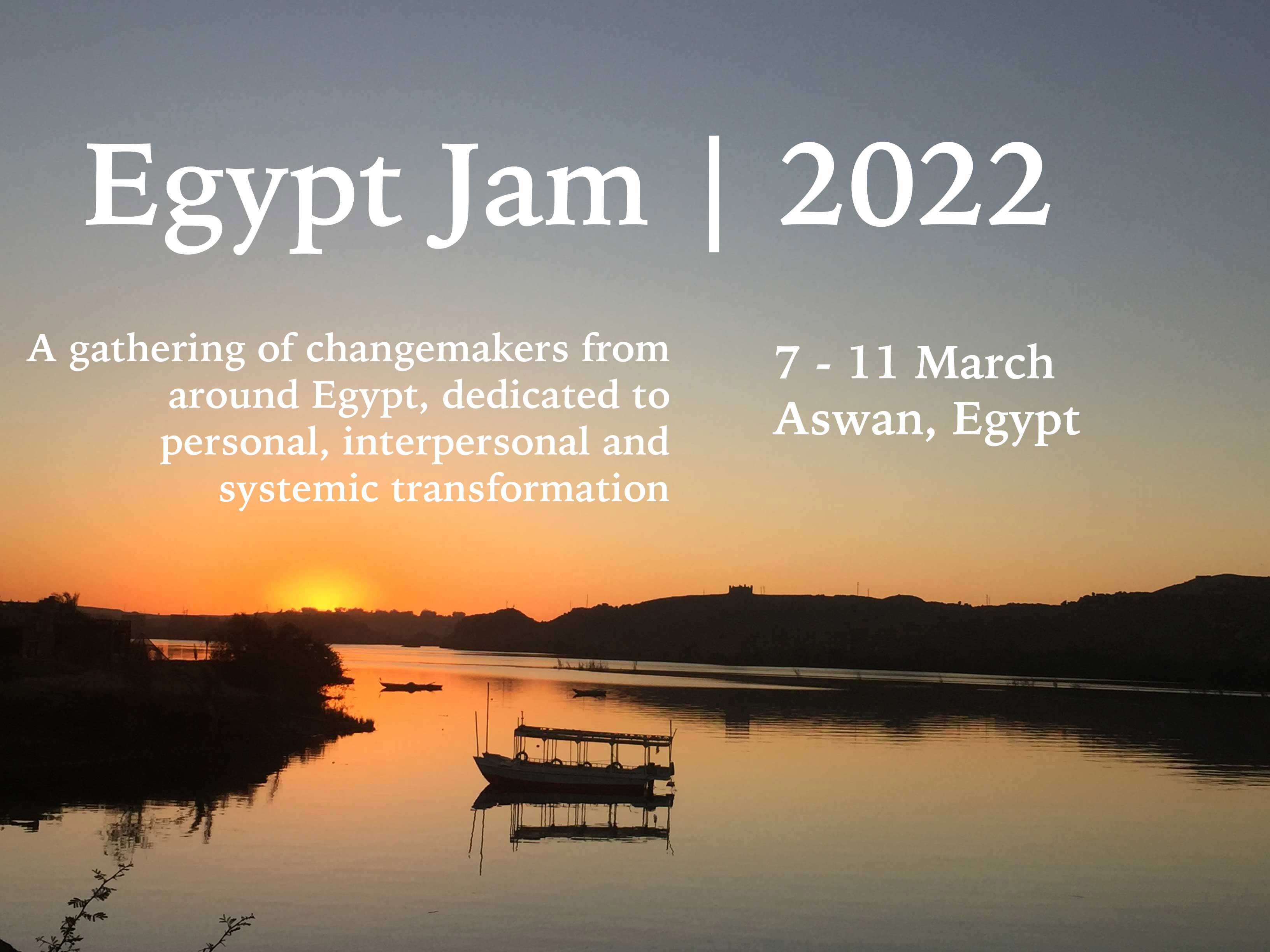 It is our honor to invite you to apply to participate in a unique gathering: the Egypt Youth Transformational Leadership Jam! This Jam will connect 20 diverse, engaged and committed leaders from around the country for sharing inspiration and skills. Over the period of five days, we will journey together through deep listening, sharing, self-discovery, systemic inquiry and community building. It will take place from 7 – 11 of March by the Nile river in Aswan. All of you are welcome and each and every part inside each of you is welcome!