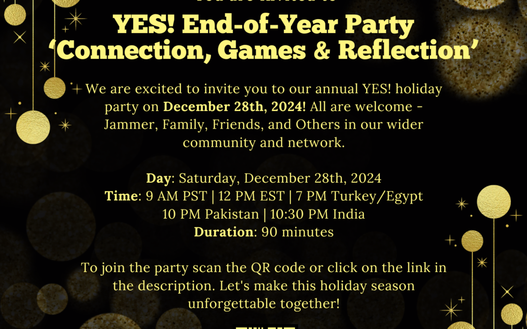 We are excited to invite you to our annual YES! End-of-Year Party on December 28th! All are welcome: Jammers, friends, family and others in our wider community and network.