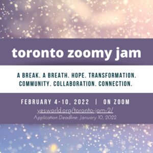 YES! is based in California, USA, and each Jam is co-organized by a unique and diverse team of partners. The Toronto Jam grew out of a short program in 2012, which then became 3 and 4 day Jams in 2013, 2014, 2016, 2018, and 2019. We held our first virtual Toronto Jam in 2021 over 6 days. This is Toronto’s seventh Jam, organized by alumni from previous Jams.